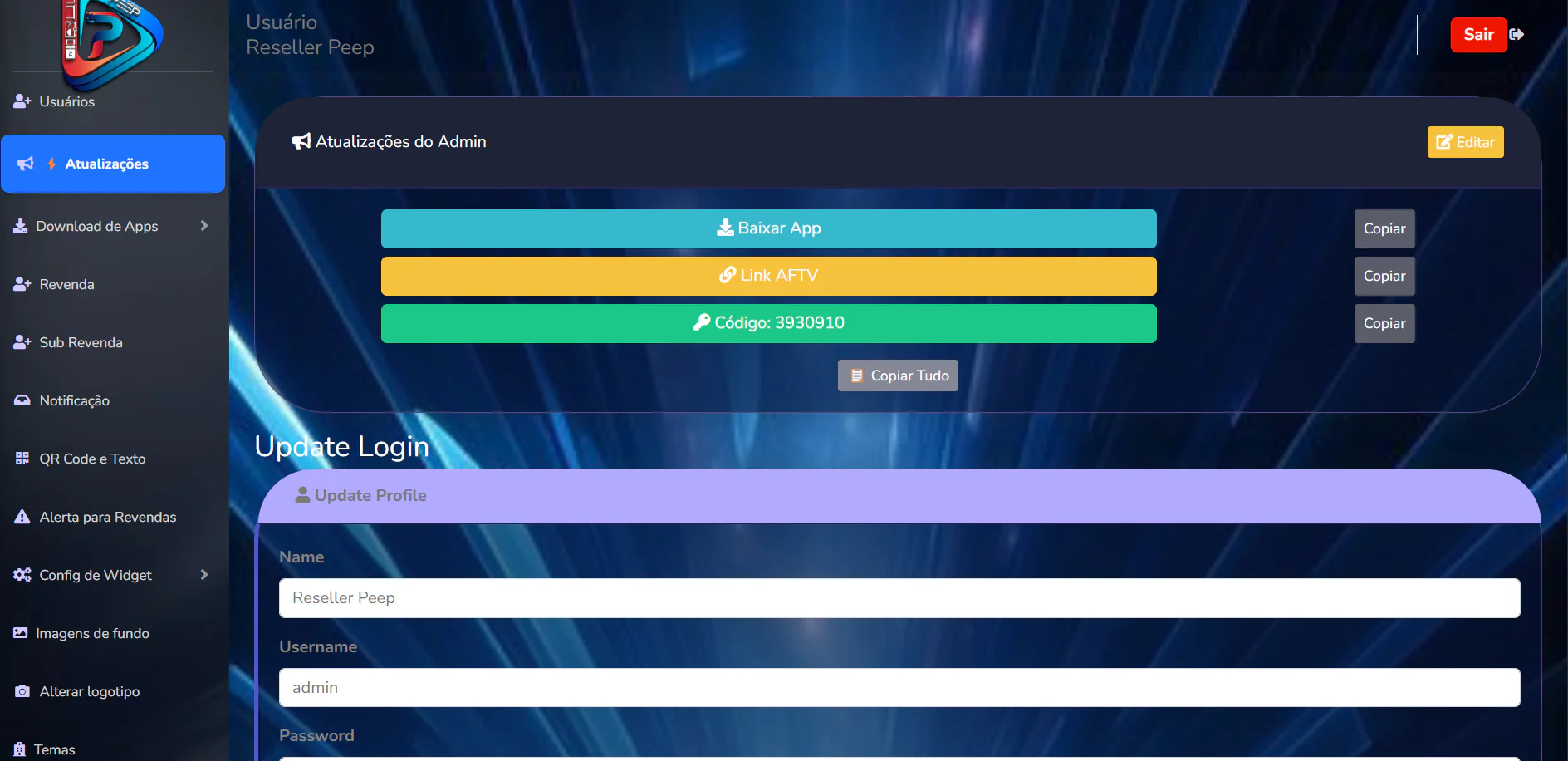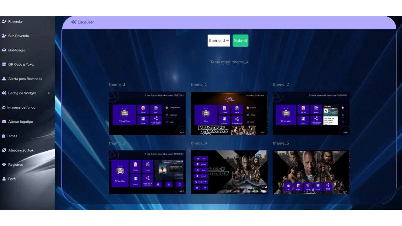 • Configurar TMDB, anúncios dinâmicos, manuais, esportes e canal do YouTube